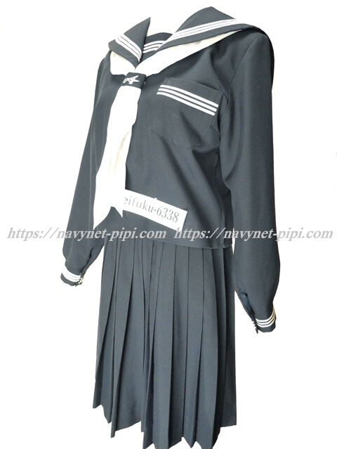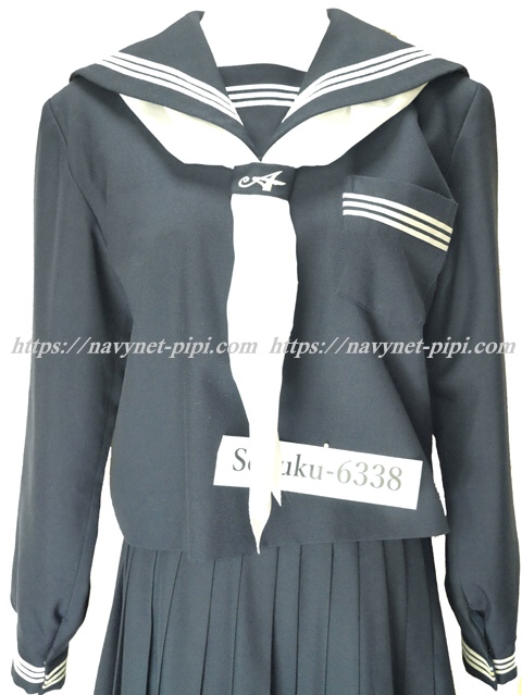 上着は濃紺でセーラー襟・胸当て・両袖口に白線3本入り☆