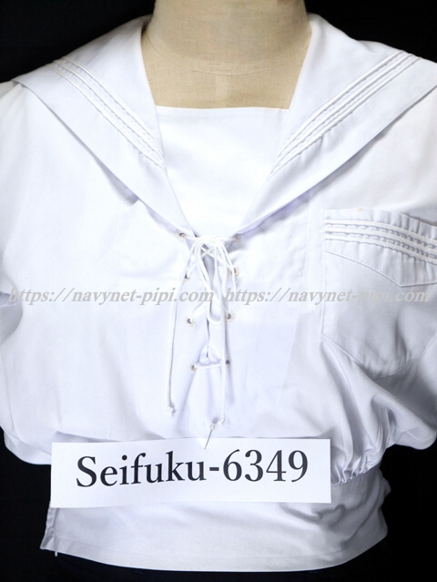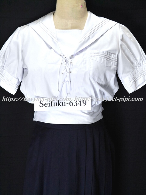 | 詳細/特徴 夏服4点セット (上着・スカート・専用紐タイ・アンダーベスト) ☆アンダーベスト付き☆ 旧タイプ仕様の制服 セーラー襟に白線3本・両脇下スナップ&ホック☆ 胸当て部分が紐タイで特徴的♪ 両袖口に白線3本入り☆ ウエスト絞りタイプの可愛いセーラー服☆ 旧タイプなので両サイド2段ホック&スナップ留め☆彡 スカートは濃紺で28箱ヒダ仕様のプリーツスカート☆ 左ファスナー&右ポケット ウエスト調整はボタン留めタイプ♪ ウエストベルトにアンダーベスト用のボタン穴彡 スカートのプリーツ数は旧タイプですが28箱ヒダ仕様です。 |
