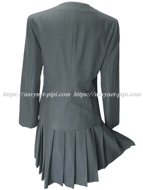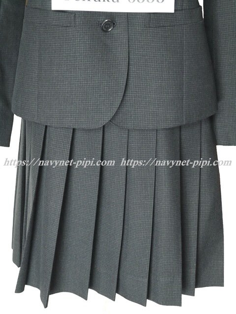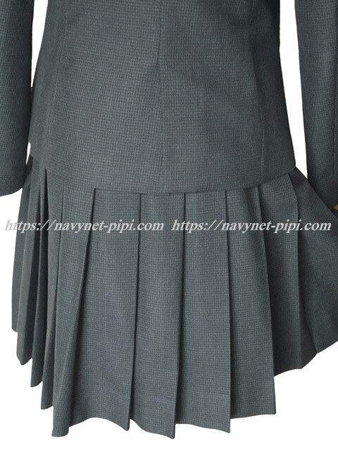 | 詳細/特徴 冬服2点セット (上着・スカート) 上着はグレー系のブロックチェック柄で襟無しタイプのブレザー☆ 胸に切りポケット・両腰にも切りポケット☆ 前ボタン4個タイプ♪ スカートもグレー系のブロックチェック柄で20車ヒダ仕様のプリーツスカート☆ 左ファスナー&ポケット ウエスト調整はアジャスタータイプ♪ |