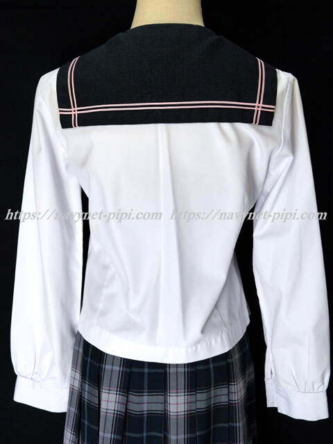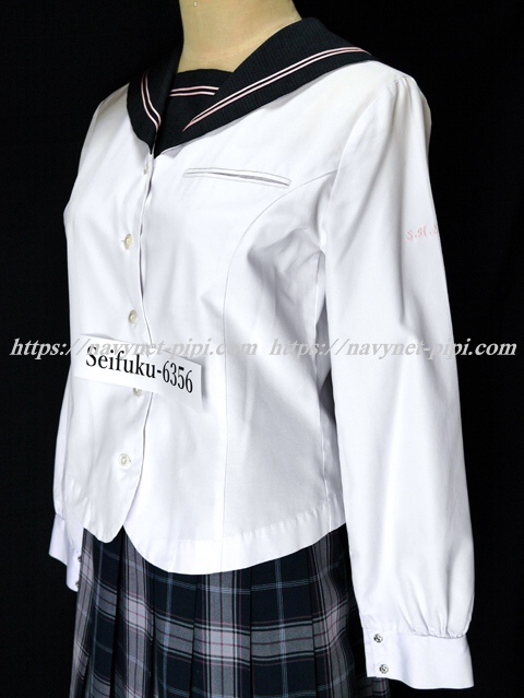 | 詳細/特徴 合服2点セット (上着・スカート) 上着は白いセーラーで前開きタイプの5個ボタン☆ セーラー襟と胸当てはグレー系のブロックチェック柄で ピンクの2本ライン入り☆ 胸に切りポケット♪ 左袖にピンクで校章刺繍入り☆ スカートは紺とグレーとエンジのチェック柄で 18本車ヒダ仕様のプリーツスカート☆ 左ファスナー&ポケット ウエスト調整はアジャスタータイプ♪ |