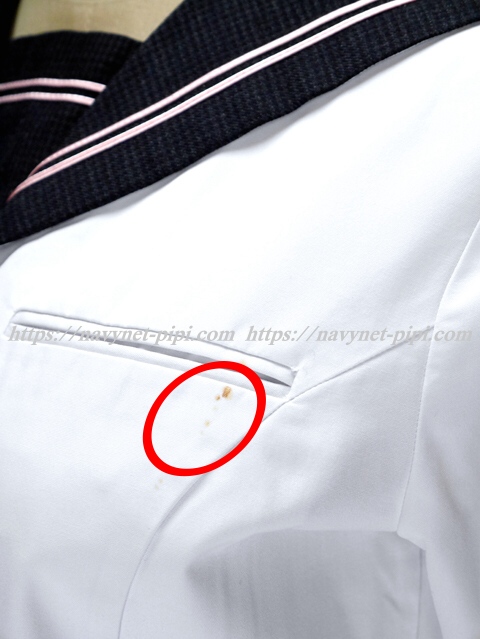 | 品質と状態 3年間の使用済み制服なので自然な使用感の傷みがあります♪丁寧に大切に着ていた様子なのですがお写真のように胸ポケット辺りにシミ汚れがある状態です☆ |