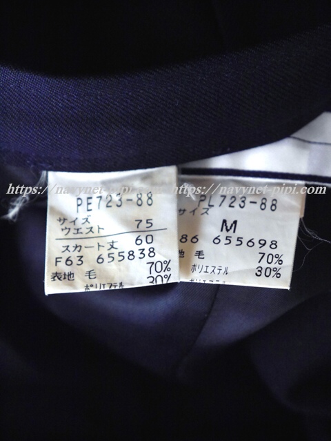 | 素材 上着・ポリエステル30%毛70%(裏地/ポリエステル100%) ブラウス・綿35%ポリエステル65% スカート・毛70%ポリエステル30%(裏地/なし) |