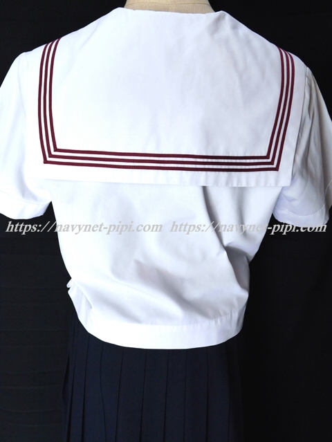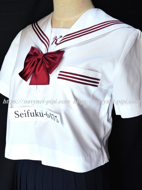 | 詳細/特徴 夏服3点セット (上着・スカート・専用リボン) ☆専用リボン付き☆ 【専用リボンは新品でポリエステル100%のハネクトーンです】 上着はセーラー襟にエンジの3本ライン・左脇下ファスナー 胸当てにエンジ色で「K」の校章刺繍入り☆ スカートは濃紺で28本車ヒダ仕様のプリーツスカート♪ 左ファスナー&ポケット☆ ウエスト調整はアジャスタータイプ♪ |