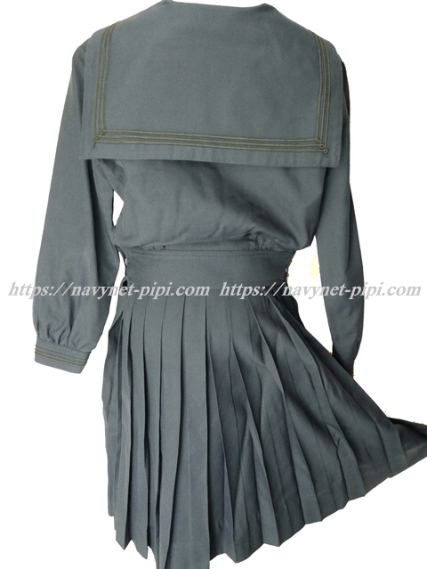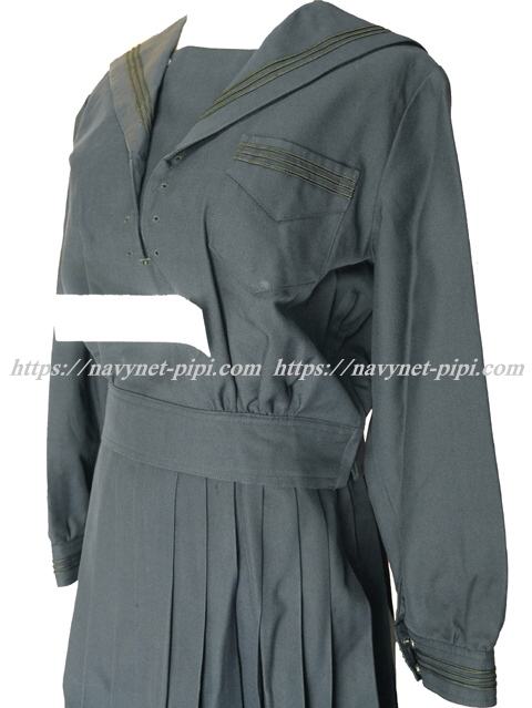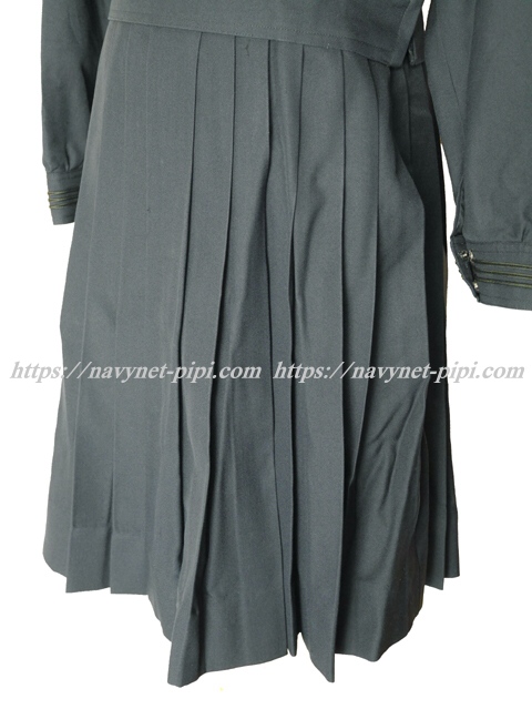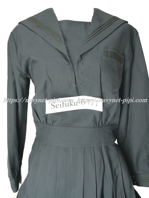| 詳細/特徴 冬服2点セット (上着・スカート) ☆若干難あり☆ 新モデルの両脇下ファスナータイプ♪ 胸当て付き・胸元部分が紐タイで特徴的なセーラー服☆ スカートは濃紺で28本箱ヒダ仕様のプリーツスカート☆ 左ファスナー&右ポケット ウエスト調整はアジャスタータイプ☆彡 |