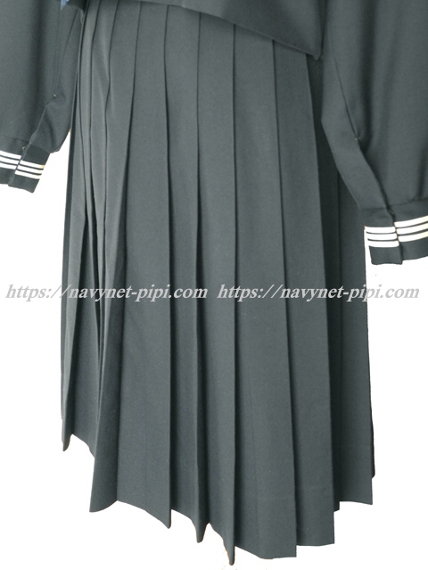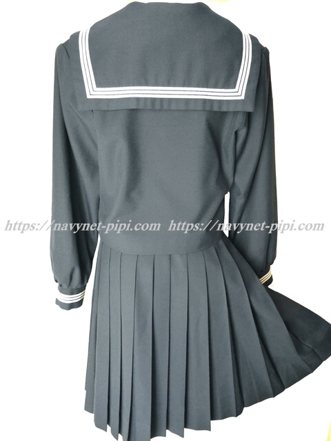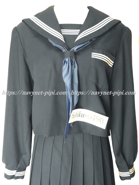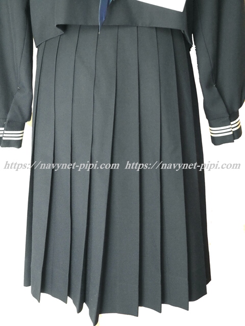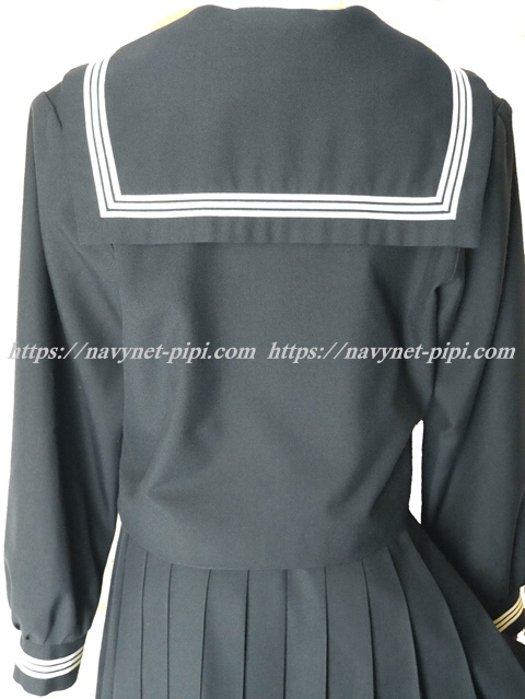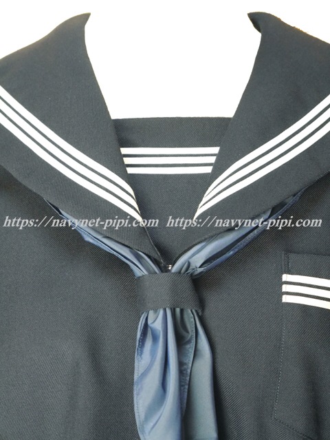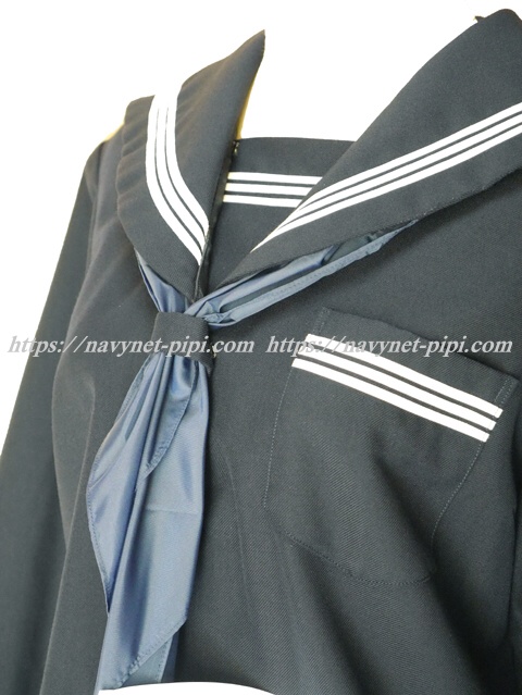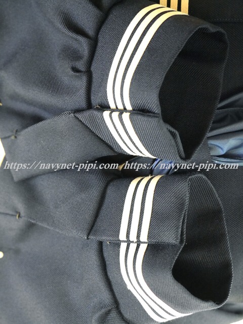 上着は濃紺でセーラー襟と胸ポケットと胸当てと両袖口に白線3本入り☆