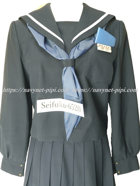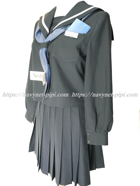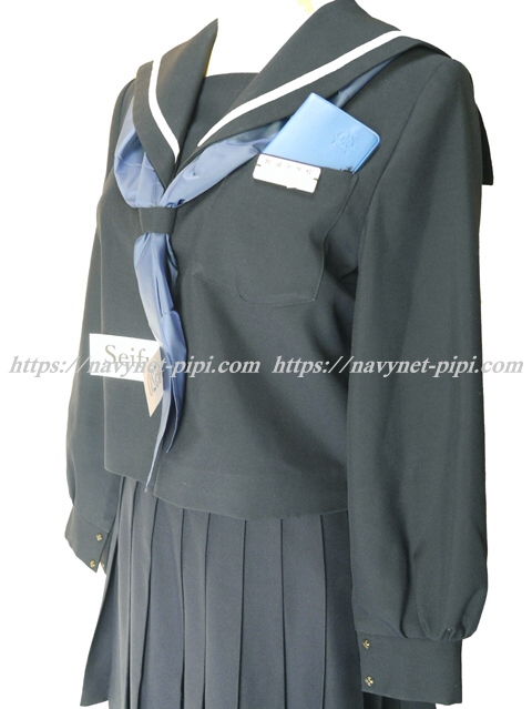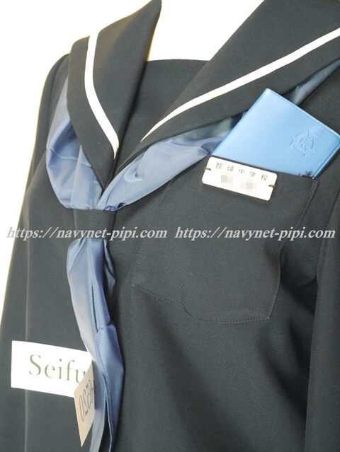 | 詳細/特徴 冬服5点セット (上着・スカート・指定スカーフ・生徒手帳・プラスチック名札) ☆生徒手帳・プラスチック名札☆ 【スカーフは新品の三角タイプで素材はナイロン100%のハネクトーンです】 人気の濃紺タイプのセーラー服セット♪ 上着は濃紺でセーラー襟に太い白線1本♪ 左脇下ファスナー・胸当て付き・スカーフ留め付き☆ セーラー襟に白で校章刺繍がポイント♪ スカートも濃紺で24本車ヒダ仕様のプリーツスカート♪ 左ファスナー&ポケット☆ ウエスト調整はアジャスタータイプ☆ ウエストベルト部分にセーラー襟と同じ白い校章刺繍入り♪ |