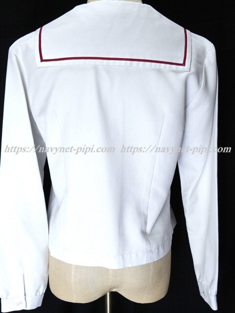 | 詳細/特徴 長袖ブラウス (指定品) ☆シミ有り☆ セーラー襟付きタイプでエンジライン1本入り☆ 左袖に校章刺繍入り♪ |