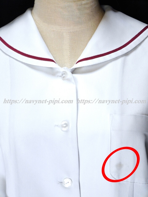 | 品質と状態 3年間の使用済み制服なので自然な使用感の傷みは若干あります♪丁寧に着ていた様子ですが胸ポケット部分にお写真のようなシミがあります♪ |