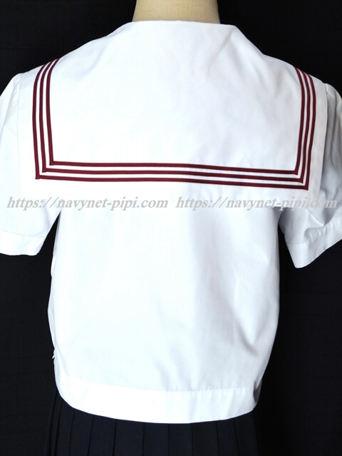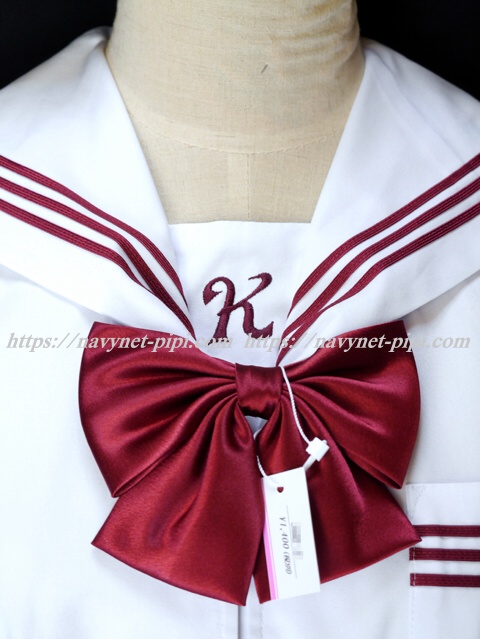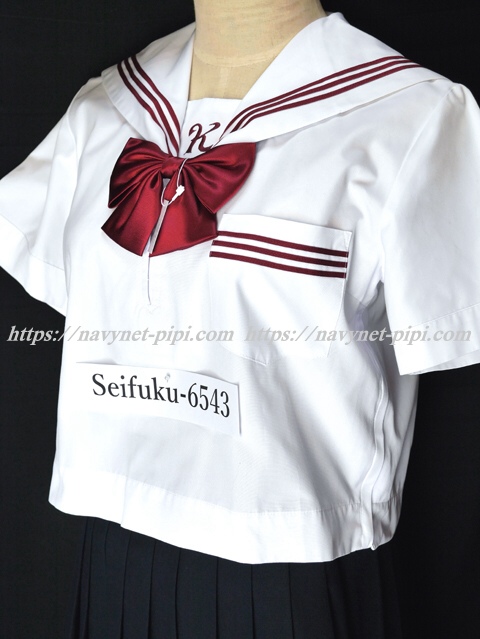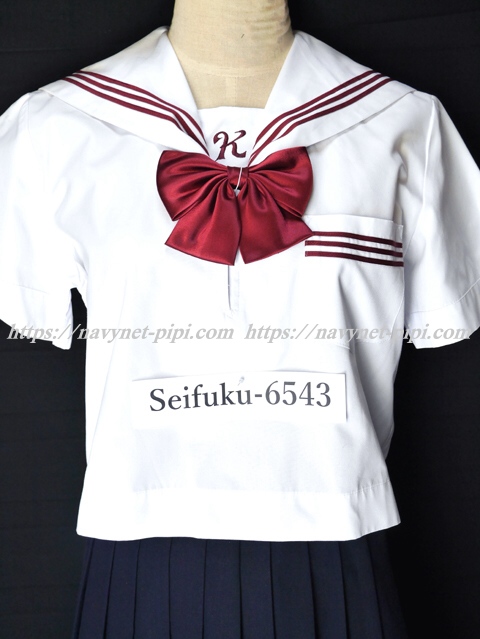 | 詳細/特徴 夏服3点セット (上着・スカート・専用リボン) ☆専用リボン付き☆ 【専用リボンは新品でポリエステル100%のハネクトーンです】 上着はセーラー襟にエンジの3本ライン・左脇下ファスナー 胸当てにエンジ色で「K」の校章刺繍入り☆ スカートは濃紺で28本車ヒダ仕様のプリーツスカート♪ 左ファスナー&ポケット☆ ウエスト調整はアジャスタータイプ♪ |