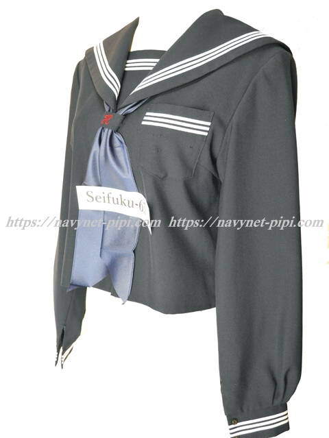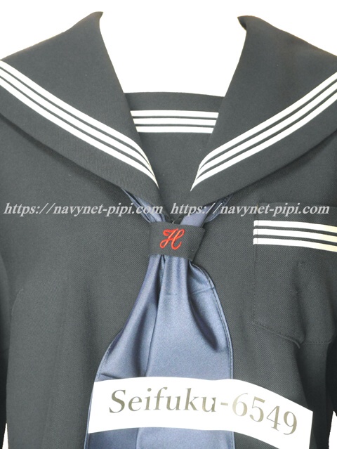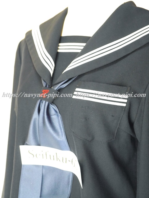 | 詳細/特徴 冬服(上着・指定スカーフ付き) ☆スカーフ付き☆ 【スカーフは新品で紺色の帯タイプで素材はナイロン100%でハネクトーンです】 人気の濃紺タイプのセーラー服♪ セーラー襟と両袖口と胸ポケットと胸当てに白線3本入り☆ 左脇下ファスナー☆ スカーフ留めに赤で校章刺繍入り♪ ♪人気の胸当て付きタイプ♪ |