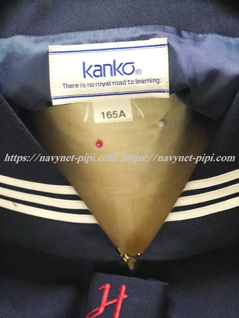 | 詳細/特徴 冬服(上着) (プラ名札付き) ☆貴重なプラスチック名札付き☆ 濃紺の冬セーラー服☆ セーラー襟と胸ポケットと両袖口に白線3本☆ スカーフ留めに赤で校章刺繍入り♪ ネーム刺繍入り・左脇下ファスナー♪ |
