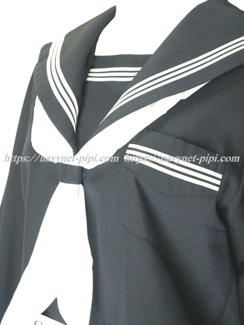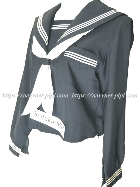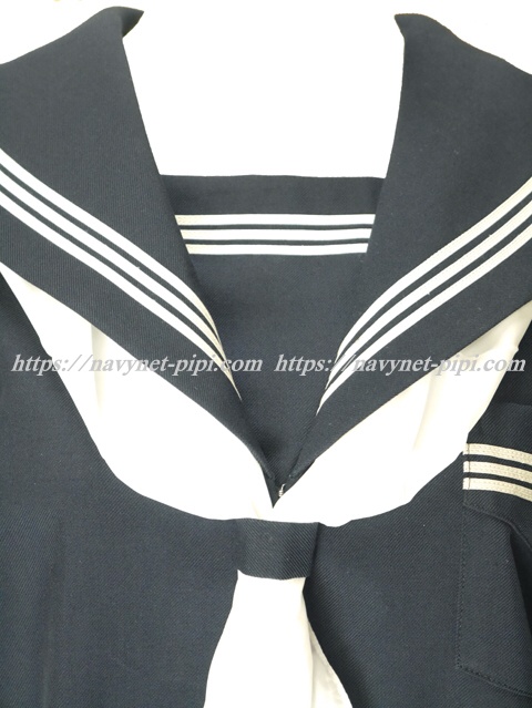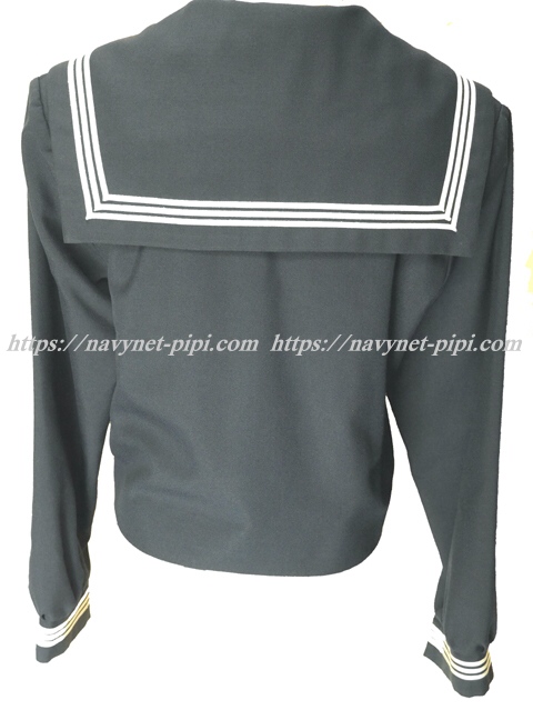 セーラー襟と胸当てと胸ポケットと両袖口に白線3本入り☆