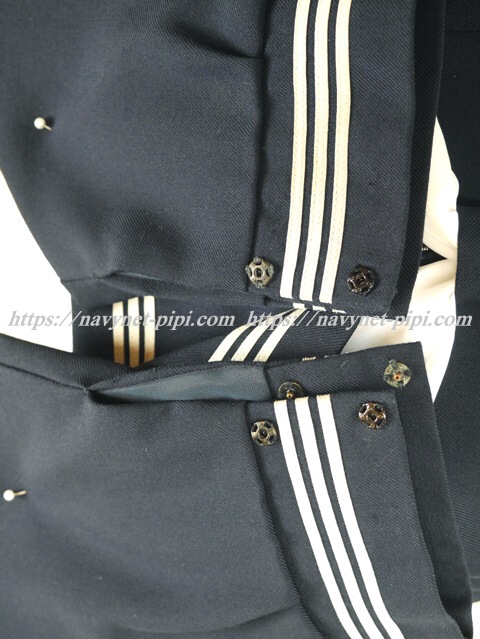 3年間の使用済み制服なので自然な使用感の傷みはあります♪お写真のように右袖口上部分にちょっぴり擦れと左袖口の白線にペンシミ汚れがある状態の品質です☆ |