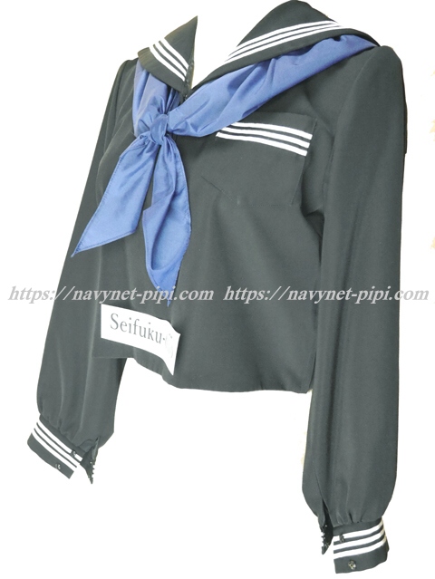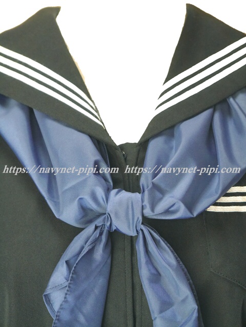 | 詳細/特徴 冬セーラー服 (上着・スカーフ付き) 【スカーフは新品の三角スカーフでハネクトーン製です】 ☆スカーフ付き☆ 黒色セーラー服♪ セーラー襟と胸ポケットと両袖口に白線3本入り☆ 左脇下ファスナー☆襟内側にネーム刺繍入り♪ |
