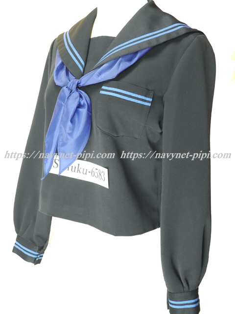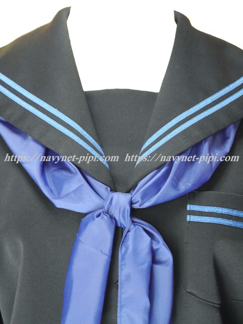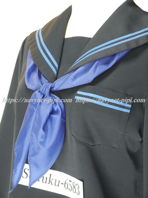 | 詳細/特徴 冬服(上着・指定スカーフ付き) ☆スベスベ感覚のセーラー服☆ 【スカーフは新品で花紺の三角タイプで素材はナイロンのハネクトーンです】 人気の濃紺タイプのセーラー服♪ 上着は濃紺でセーラー襟と胸ポケットと両袖口に水色の2本ライン♪ 胸当て付き・左脇下ファスナー☆ ♪珍しいポリエステル100%素材のセーラーです♪ |