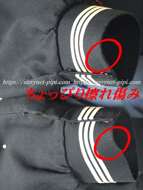 | 品質と状態 3年間の使用済み制服なので自然な使用感の傷みは若干あります♪丁寧に着ていた様子で特に目立った傷みもく綺麗な状態なのですが厳しく言っちゃうと両袖口に軽くちょっぴり擦れ傷みと1箇所お写真のような汚れがある状態かなぁ♪ |