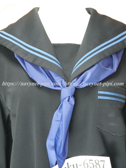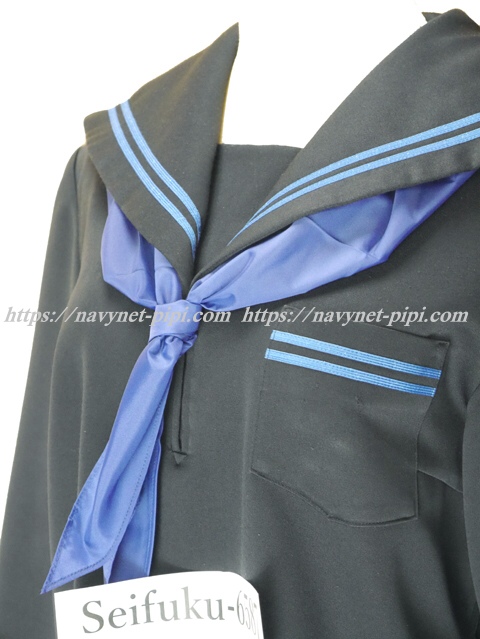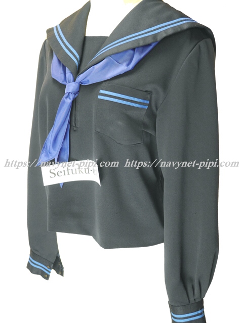 | 詳細/特徴 冬服(上着・指定スカーフ付き) ☆スベスベ感覚のセーラー服☆ 【スカーフは新品で花紺の三角タイプで素材はナイロンのハネクトーンです】 人気の濃紺タイプのセーラー服♪ 上着は濃紺でセーラー襟と胸ポケットと両袖口に水色の2本ライン♪ 胸当て付き・左脇下ファスナー☆ ♪珍しいポリエステル100%素材のセーラーです♪ |