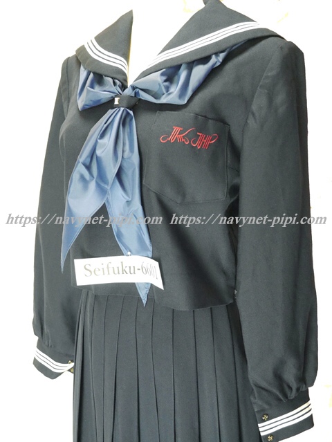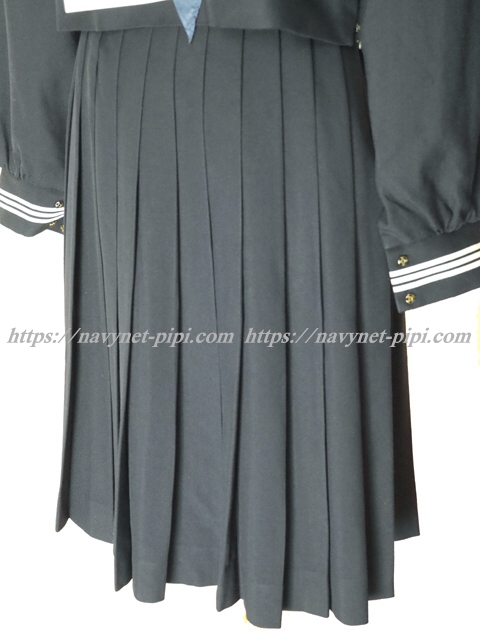 | 詳細/特徴 冬服4点セット (上着・スカート・指定スカーフ・学年章バッチ) ☆学年章バッチ付き☆ 【スカーフは新品の三角スカーフ、素材はナイロン100%のハネクトーンです】 最近は少なくなってしまったセーラー服です♪ 上着は濃紺でセーラー襟と両袖口に白線3本入り♪ 胸ポケットの赤い校章刺繍がポイント☆ 左脇下ファスナー♪ スカートも濃紺で28本車ヒダ仕様のプリーツスカート♪ 左ファスナー&左ポケット ウエスト調整はアジャスタータイプ☆ |