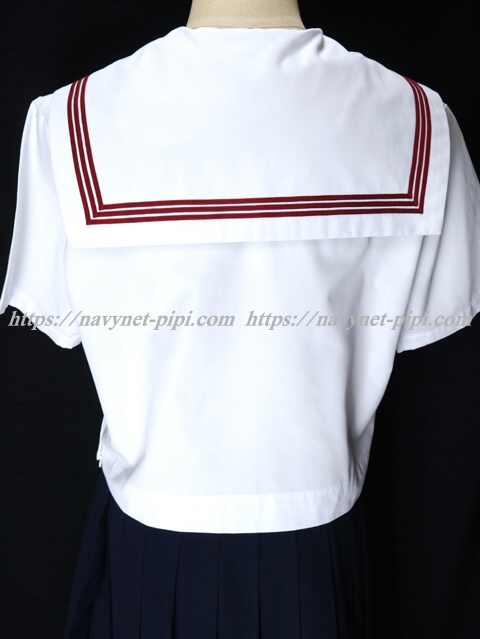 | 詳細/特徴 夏服3点セット (上着・スカート・指定スカーフ) ☆人気制服☆ 【スカーフは新品でえんじ色の三角タイプで素材はナイロンでアミックです】 セーラー襟にエンジ色の3本ラインが印象的で可愛いです☆ 上着は左脇下ファスナー・スカーフ留め付き☆ 胸ポケットに校章刺繍入り♪ 校章プリント入りのネーム名札付き☆ スカートは濃紺で24本車ヒダ仕様のプリーツスカート♪ 左ファスナー&ポケット☆ ウエスト調整はアジャスタータイプ♪ |