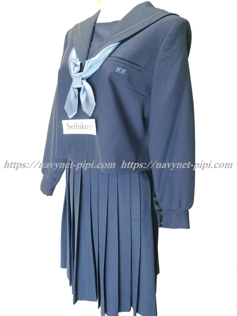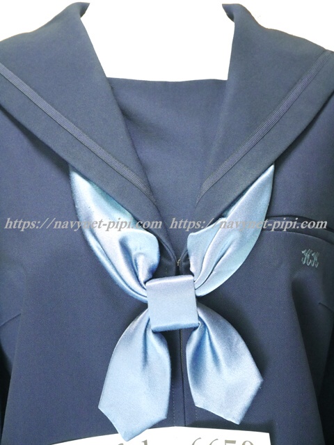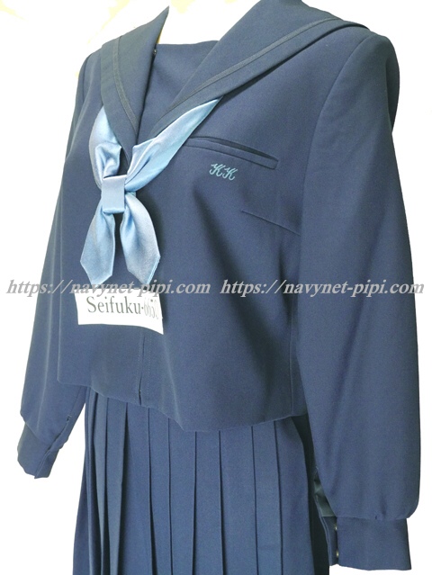 | 詳細/特徴 冬服3点セット (上着・スカート・専用シルク風リボン) ☆現行制服☆ 生地の色は青紺って感じの色です♪ セーラー襟のラインは紺色の1本太ラインです☆ 前開きファスナー・胸当て付き☆ 胸ポケットに北高校の校章の刺繍入り☆ 青紺の28本車ヒダプリーツスカート☆ 左ファスナー&ポケット☆ ウエスト調整はアジャスタータイプです♪ |