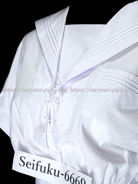 | 詳細/特徴 夏服(上着) (上着・専用紐タイ) ☆旧タイプ☆ セーラー襟に白線3本・両脇下ファスナータイプ 胸当て部分が紐タイで特徴的♪ 両袖口に白線3本入り☆ ウエスト絞りタイプの可愛いセーラー服☆ 旧タイプなので両サイド2段ホック&スナップ留め☆彡 |