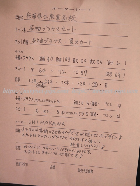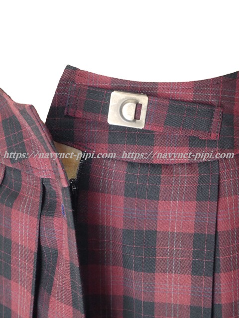 | 詳細/特徴 ブラウスセット (長袖ブラウス・スカート) ☆現行制服☆ ☆スカートは新タイプのヒップハング☆ ブラウスは最新の改良タイプで丈が短くなったデザイン☆ ブラウスの左袖に校章刺繍入り☆校章の色は学年によって色分けされています♪ スカートは改良タイプで冬服と同じ赤いチェック柄タイプのスカート☆ 20本車ヒダプリーツスカート・左ファスナー・左ポケット ウエスト調整はアジャスタータイプ☆ ヒップハングタイプでウエスト下と裾上に校章刺繍入り☆ |