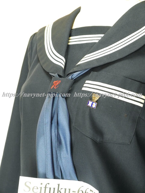 | 詳細/特徴 冬服5点セット (上着・スカート・指定スカーフ・校章バッチ・学年章バッチ) ☆生地傷み3箇所☆ 【スカーフは新品で紺色の帯タイプで素材はナイロン100%でアミックです】 人気の濃紺タイプのセーラー服セット♪ 上着はセーラー襟と胸ポケット、両袖口に白線3本入り☆ 胸当てにも白線3本入り♪ 左脇下ファスナー・内側にネーム刺繍入り☆ スカーフ留めに赤で校章刺繍入り☆ ♪人気の胸当て付きタイプ♪ スカートは濃紺で24本車ヒダ仕様のプリーツスカート♪ 左ファスナー&ポケット♪ ウエスト調整はアジャスタータイプ☆ |