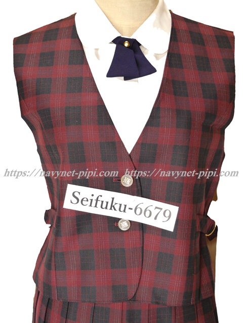 | 詳細/特徴 冬服4点セット (ベスト・長袖ブラウス・指定リボン・スカート) ☆希少な指定リボン付き☆ 赤いチェック柄のベストと長袖ブラウスとスカートのセット♪ スカートは20本車ヒダプリーツスカート♪ 新タイプでウエストベルト下と裾上に校章刺繍入り☆ ウエスト調整はアジャスタータイプ♪ スカートは腰スカートの旧タイプ ブラウスの左腕の校章刺繍の色は学年によって色分けされています☆ |