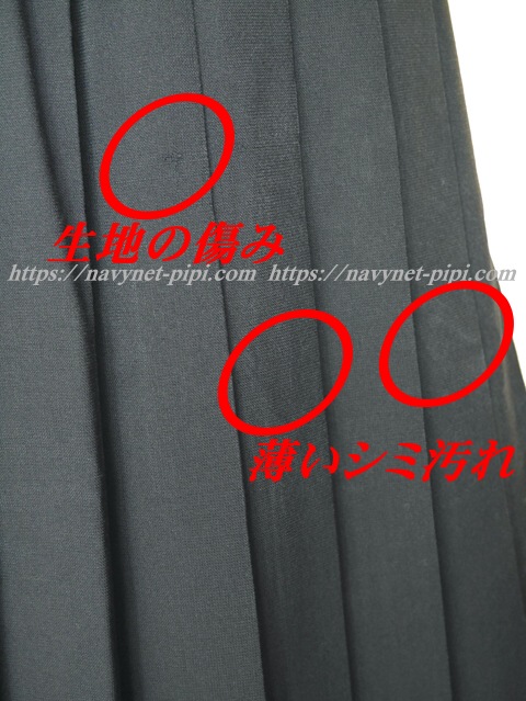 3年間の使用済み制服なので自然な使用感の傷みはあります♪丁寧に大切に着ていた様子なのですがお写真のように前6 本目プリーツに虫食い傷みと所々にプリーツの擦れ傷みがあります☆