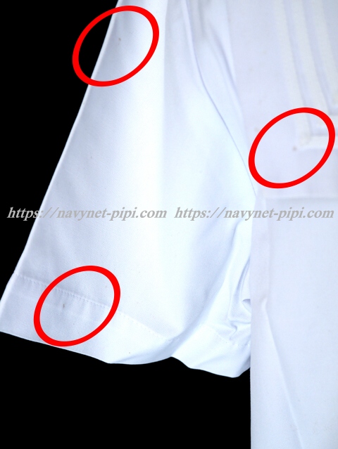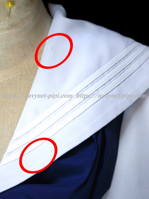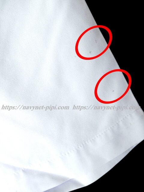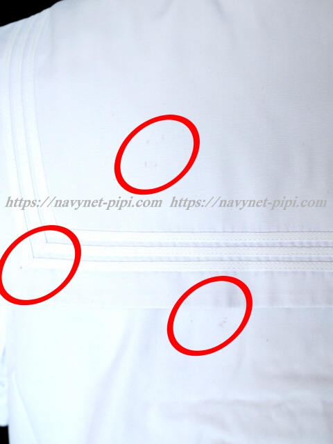 3年間の使用済み制服なので自然な使用感の傷みは若干あります。お写真のようにシミ汚れがあります。前、