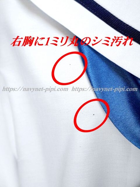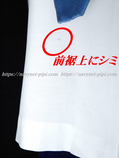 | 品質と状態 3年間の使用済み制服なので自然な使用感の傷みは若干あります。お写真のように上着の前裾上に1箇所と左袖に1ミリ丸程度、右胸横、左袖等に薄いシミ汚れがある状態です。 |