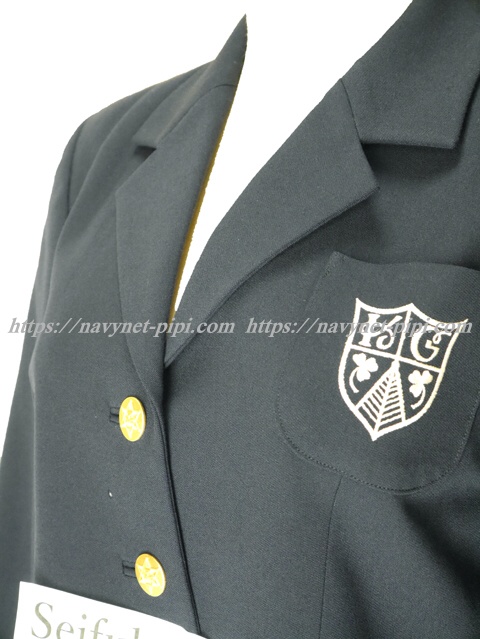 | 詳細/特徴 冬服(上着) (濃紺ブレザー) ☆難あり品☆ 濃紺のブレザー制服 上着は胸ポケットの校章刺繍が特徴的♪ |