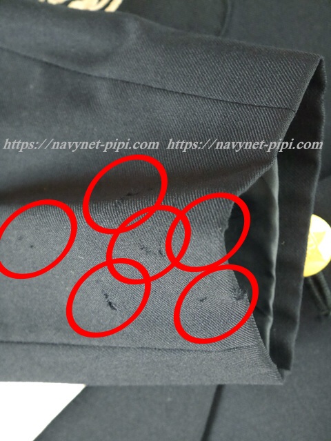 | 品質と状態 3年間の使用済み制服なので自然な使用感傷みはあります。お写真のように右ポケットに1箇所、右ポケット上に1箇所と左袖に生地の傷みがあります☆ |