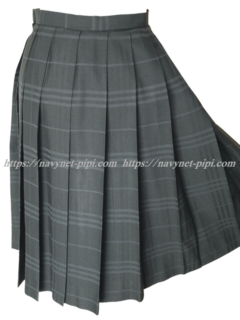 黒地にグレーのチェック柄スカート・16本車ヒダ仕様のプリーツスカート♪