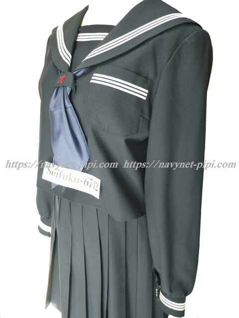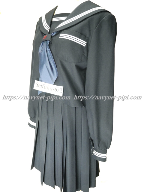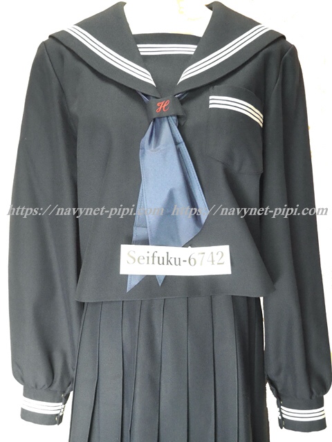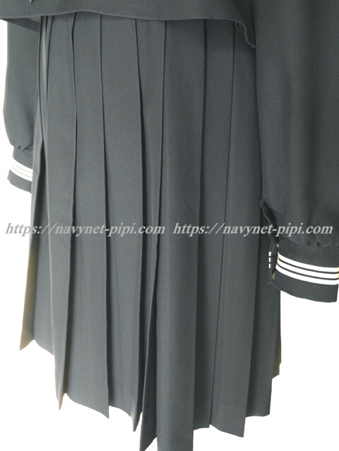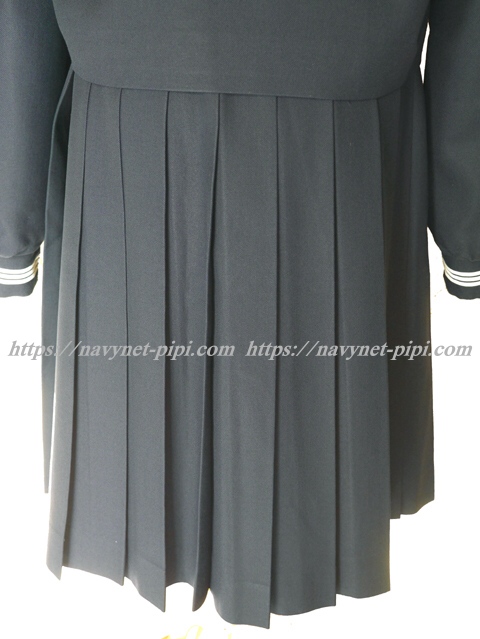| 詳細/特徴 冬服3点セット (上着・スカート・指定スカーフ) ☆生地傷みあり☆ 【スカーフは新品で紺色の帯タイプで素材はナイロン100%でアミックです】 人気の濃紺タイプのセーラー服セット♪ 上着はセーラー襟と胸ポケット、両袖口に白線3本入り☆ 胸当てにも白線3本入り♪ 左脇下ファスナー☆ スカーフ留めに赤で校章刺繍入り☆ ♪人気の胸当て付きタイプ♪ スカートは濃紺で24本車ヒダ仕様のプリーツスカート♪ 左ファスナー&ポケット♪ ウエスト調整はアジャスタータイプ☆ |