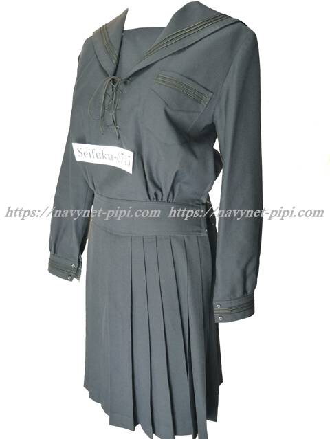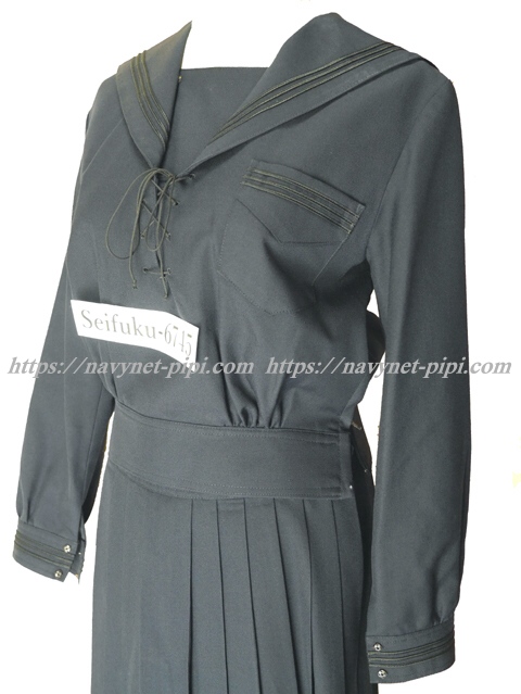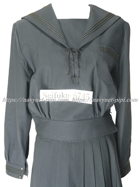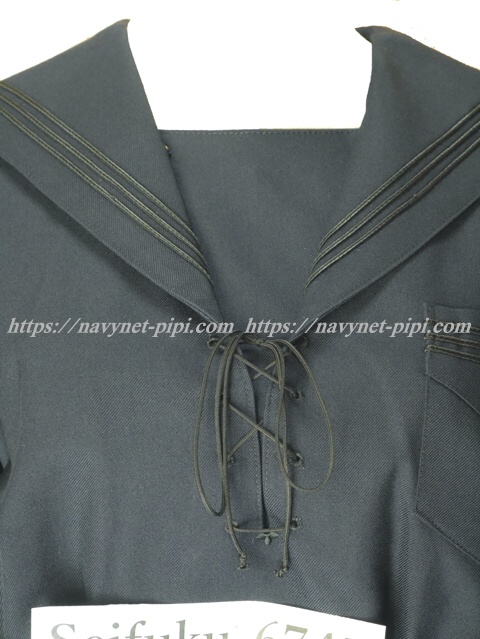 | 詳細/特徴 冬服3セット (上着・スカート・紐タイ) ☆人気制服☆ 上着新タイプ・スカート旧タイプ スカートミニ丈 濃紺のセーラー服♪ セーラー襟と胸ポケットと両袖口に3本ライン☆ 新タイプなので両脇下ファスナー 胸当て付き 胸元部分に紐タイ穴がある特徴的なセーラー服☆ スカートは濃紺で28本箱ヒダ仕様のプリーツスカート☆ 左ファスナー&右ポケット ウエストベルトにアンダーベスト用のボタン穴☆彡 スカートのプリーツ数は旧タイプですが28本箱仕様です。 |