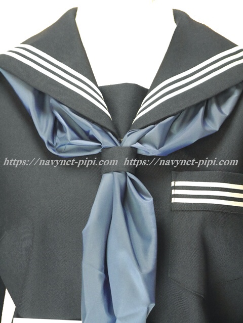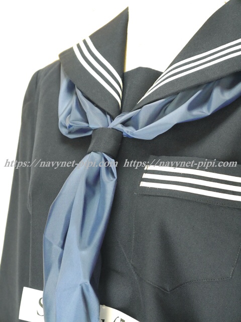 | 詳細/特徴 冬セーラー服 (上着・スカーフ付き) ☆スカーフ付き☆ 【スカーフは新品の三角スカーフで素材はハネクトーンナイロン100%です】 濃紺のセーラー服♪ セーラー襟と胸ポケットと両袖口に白線3本線♪ スカーフ留め付・左脇下ファスナー☆ |