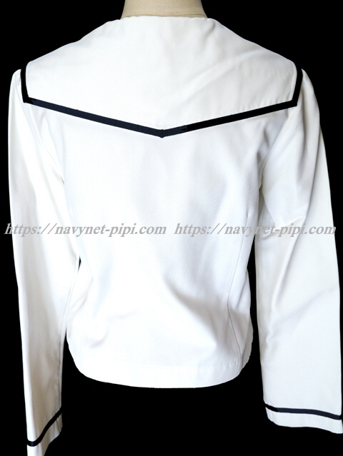 セーラー襟に紺色の縁取りライン入りで襟の後ろが可愛いデザイン(^^♪