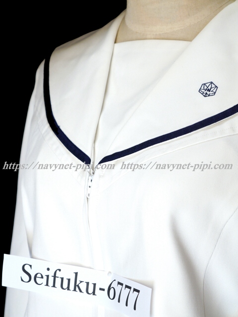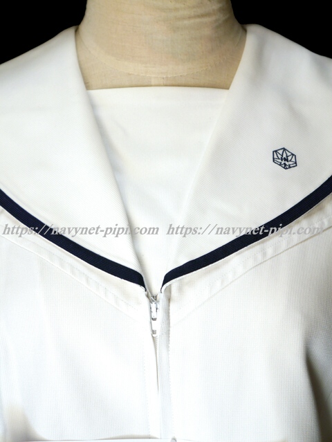 合服の上着は大きな胸当て付きで左セーラー襟に校章刺繍入り♪