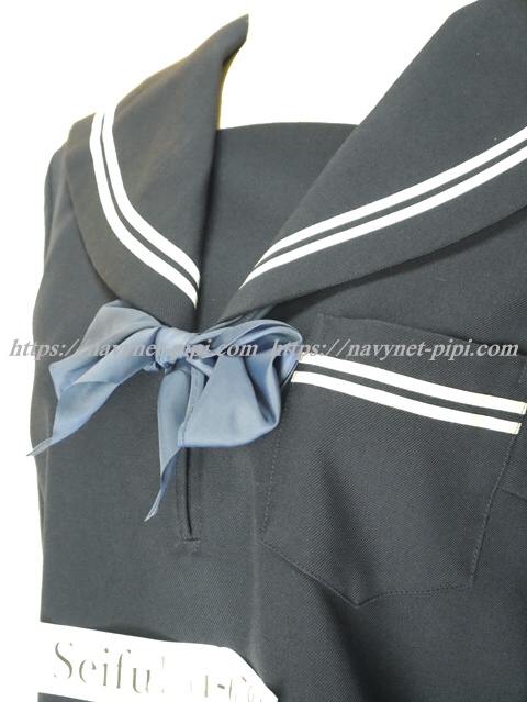 | 詳細/特徴 冬服(上着) (上着・指定スカーフ) ☆濃紺セーラー☆ 【スカーフはお古で紺色の帯タイプで素材はナイロンのハネクトーンです】 人気の濃紺タイプのセーラー服♪ 上着は濃紺でセーラー襟に白線2本タイプ♪ 両袖口と胸ポケットにも白線2本☆ 左脇下ファスナー☆ 後ろセーラー襟の角に校章マークの刺繍入り♪ ♪胸当て付きタイプ♪ |
