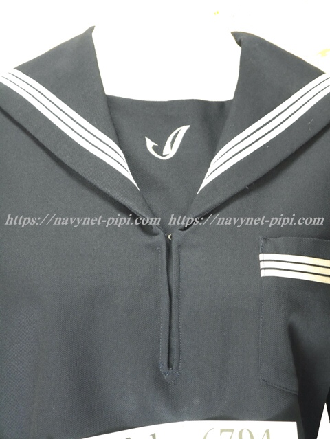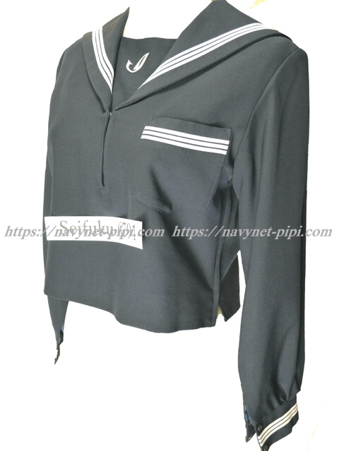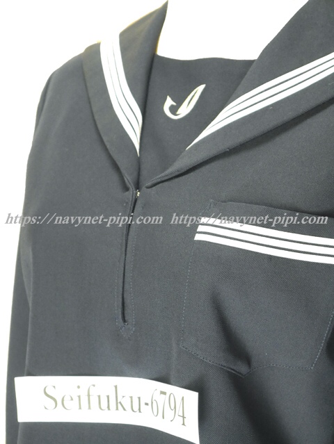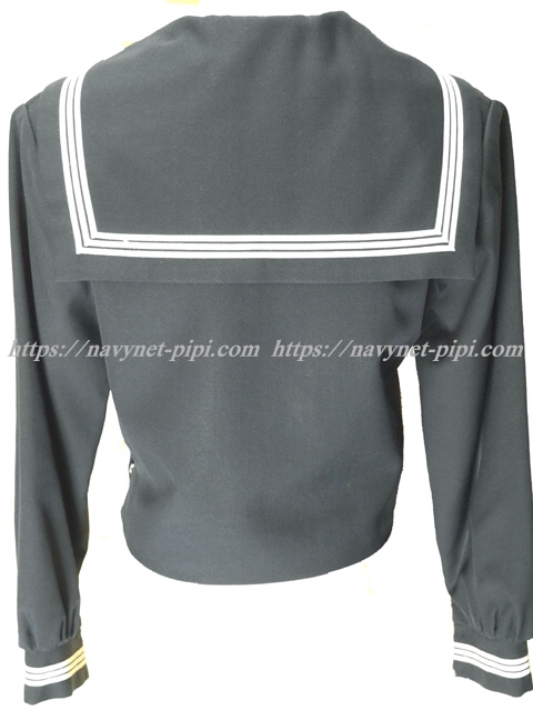 セーラー襟と胸当てと胸ポケットと両袖口に白線3本入り☆