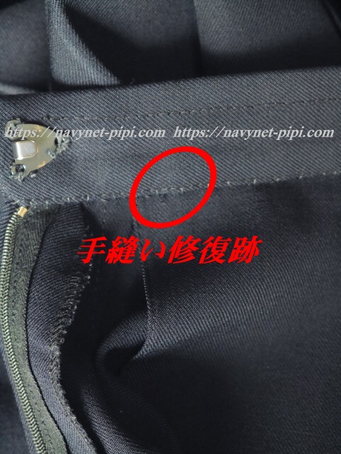 使用済み制服なので自然な使用感の傷みは若干あります。丁寧に着ていた様子なのですが後ろプリーツの1箇所に若干の擦れ(破れ裂けはありません)があります。あとウエスト内側に手直し跡があります♪
