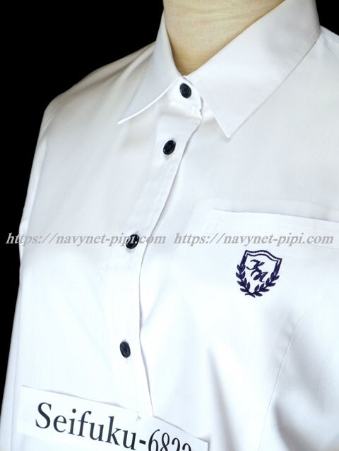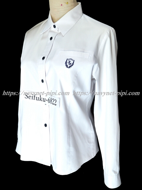 | 詳細/特徴 長袖ブラウス (指定品) ☆現行制服☆ ブラウスは白い長袖タイプで紺色ボタンがポイント☆ 胸ポケットの校章刺繍が特徴的☆ |