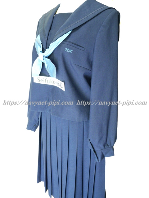 | 詳細/特徴 冬服3点セット (上着・スカート・専用シルク風リボン) ☆現行制服☆ 生地の色は青紺って感じの色です♪ セーラー襟のラインは紺色の1本太ラインです☆ 前開きファスナー・胸当て付き☆ 胸ポケットに北高校の校章の刺繍入り☆ 青紺の28本車ヒダプリーツスカート☆ 左ファスナー&ポケット☆ ウエスト調整はアジャスタータイプです♪ |