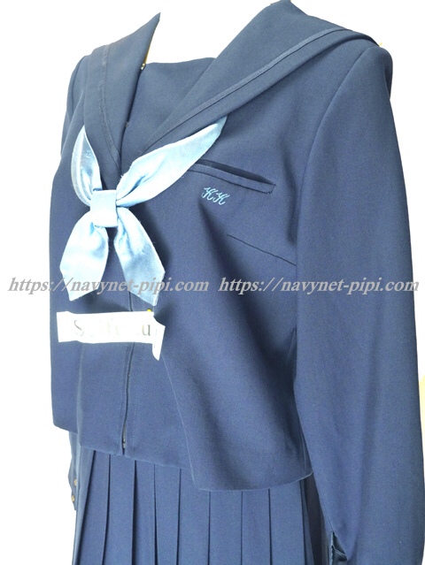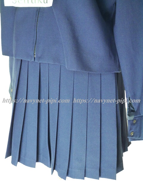 | 詳細/特徴 冬服3点セット (上着・スカート・専用シルク風リボン) ☆現行制服☆ ミニ丈スカート 生地の色は青紺って感じの色です♪ セーラー襟のラインは紺色の1本太ラインです☆ 前開きファスナー・胸当て付き☆ 胸ポケットに北高校の校章の刺繍入り☆ 青紺の28本車ヒダプリーツスカート☆ 左ファスナー&ポケット☆ ウエスト調整はアジャスタータイプです♪ |