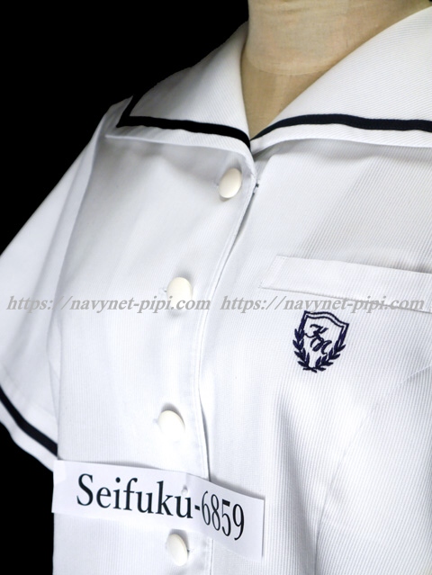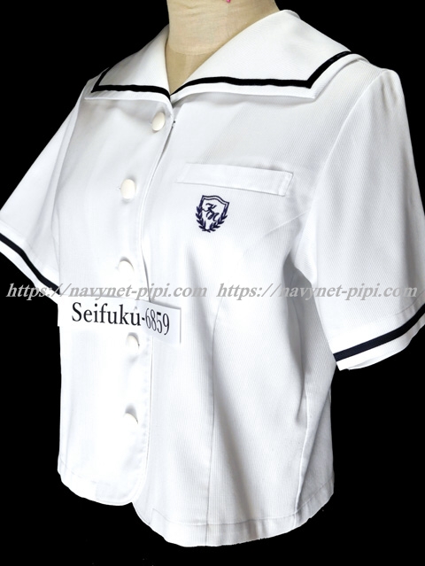 | 詳細/特徴 夏服セーラーブラウス (半袖) ☆現行制服☆ 白で半袖のセーラー襟付きブラウス♪ 両袖口とセーラー襟に紺色のライン入り☆ 胸ポケット部分に校章刺繍入り☆ |