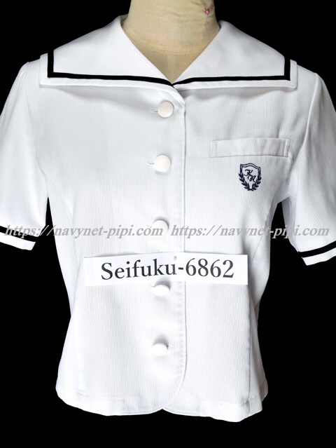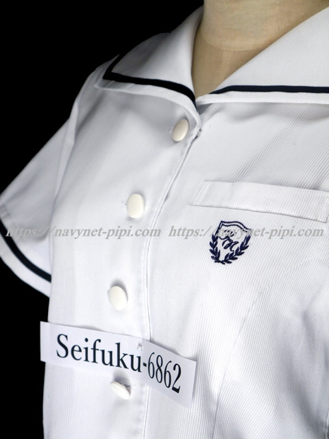 | 詳細/特徴 夏服セーラーブラウス (半袖・2着セット) ☆現行制服☆ 白で半袖のセーラー襟付きブラウス♪ 両袖口とセーラー襟に紺色のライン入り☆ 胸ポケット部分に校章刺繍入り☆ |