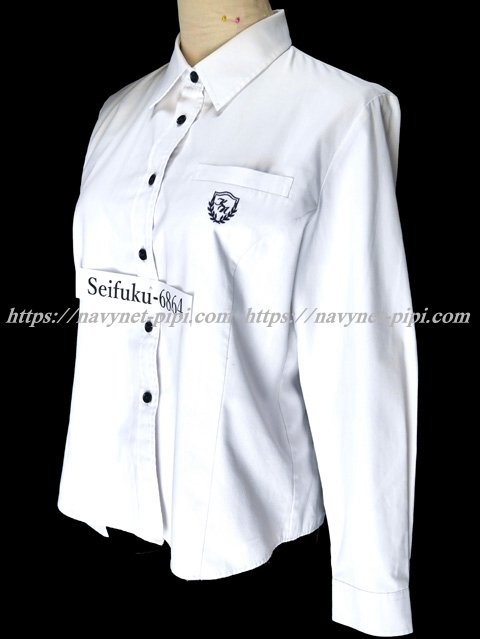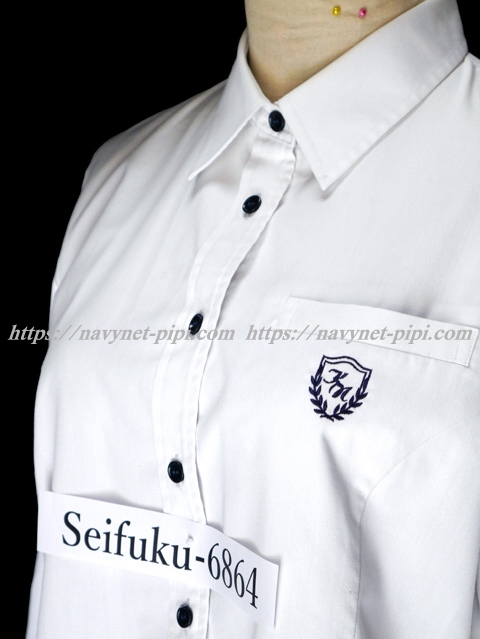 ブラウスは紺色ボタンが特徴的・胸ポケットに校章刺繍☆