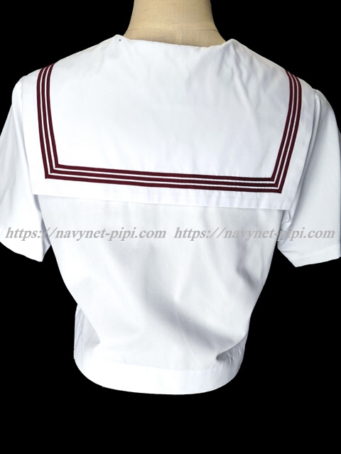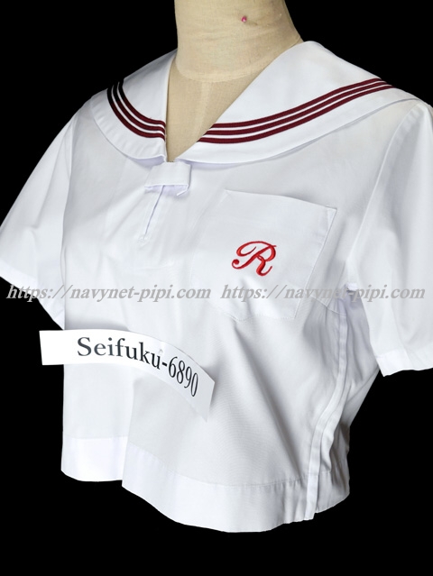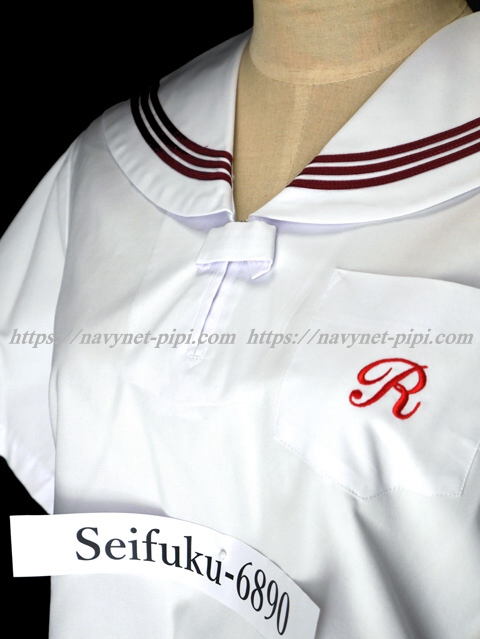 | 詳細/特徴 夏服(上着) ☆人気制服☆ セーラー襟にエンジ色の3本ラインが印象的で可愛いです☆ 上着は左脇下ファスナー・スカーフ留め付き☆ 胸ポケットに校章刺繍入り♪ |