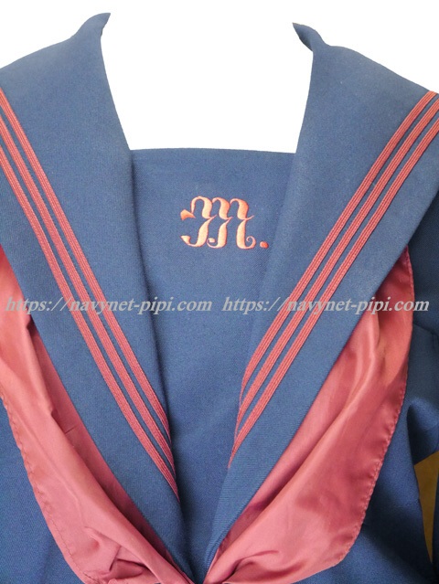 セーラー襟と両袖口にえんじ色の3本ライン♪